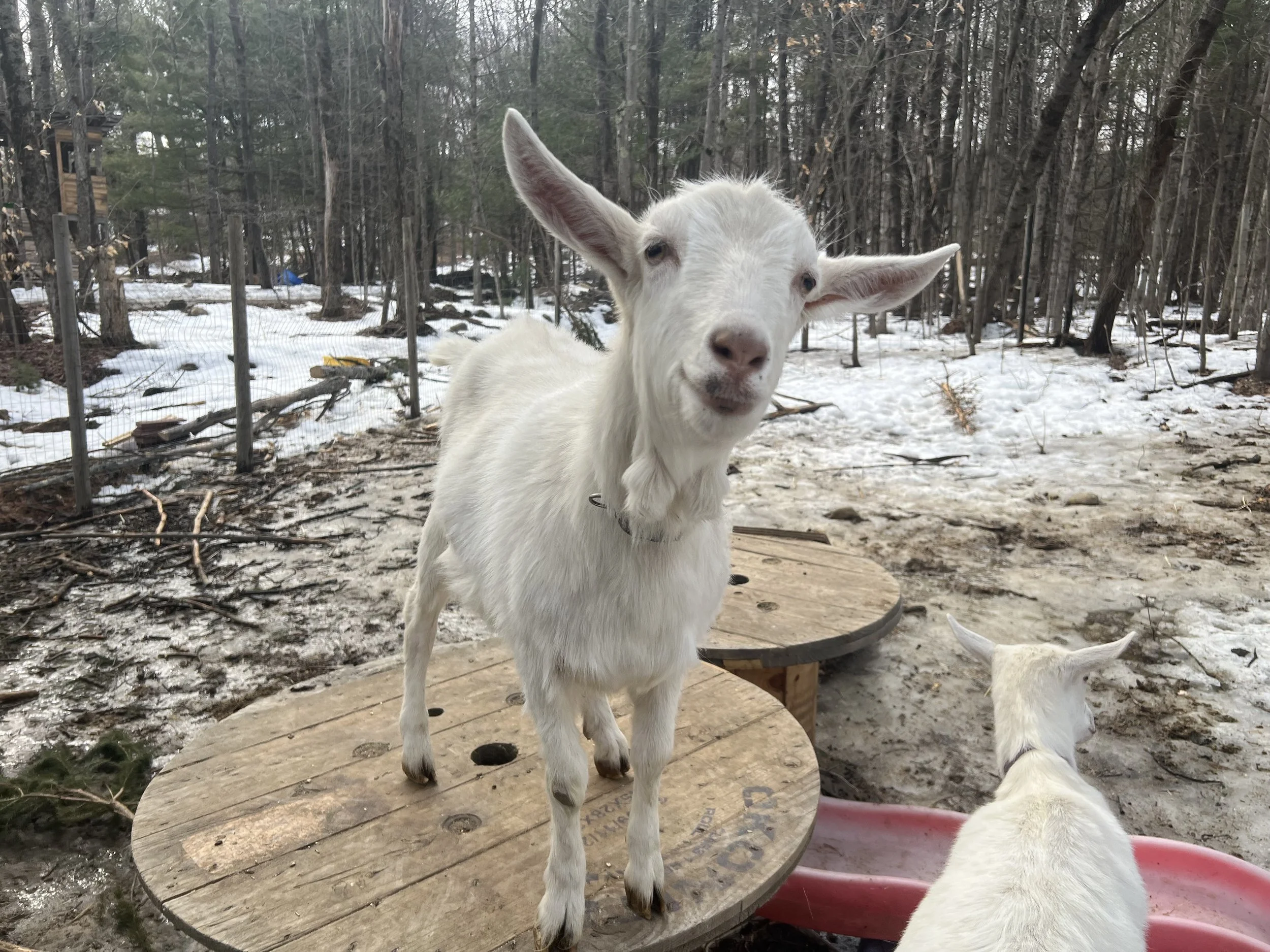 I am the most playful goat on the farm. I love to run and jump and play with my human brother.